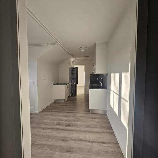 Under Januari har vi ett unikt erbjudande på denna lägenhet! Skriver du ett avtal i Januari får du fri hyra hela Februari och kan flytta in i lugn och ro. Välkommen till en renoverad 2 RoK med genomgående hög och modern standard. HALL Välkomnade hall med svart entrébeläggning, vita väggar och golv i trälaminat - här finns också en klädkammare. KÖK Modernt kök med rostfria vitvaror, antracitgråa bänkskivor och glaskeramikhäll. Luckorna är vita med stilrena stålhandtag. Köket är utrustat med kyl/frys, ugn/häll, fläkt samt diskmaskin och in...