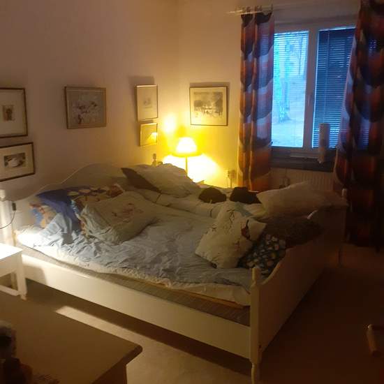 Charmig hörnlägenhet med balkong på n.b. Ett rum med dubbelsäng och ett med bäddsoffa uthyres. Skåp i badrum..Eget fack i kylskåp och tillgång till frys. 5 min gång till Coop och busshållplats. Till centrum ca 5 min buss och 15 min promenad. Direktbuss högskolan, nr 12, tar ca 12 minuter. Nära sjön Runn. I hyra ingår möblerat rum, normalförbrukning av el, värme och vatten, samt tv och bredband, tillgång till kök, badrum och vardagsrum. ABSOLUT KRAV: Rökfritt i lägenhet SAMT kattvän. En månads uppsägningstid. Gärna student på högskolan....