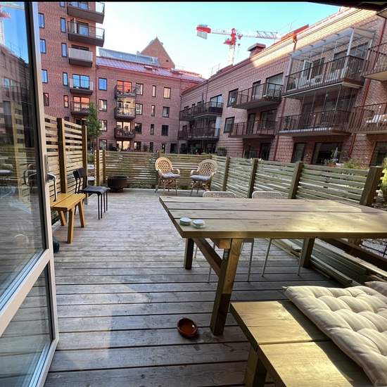 Öppen, modern tvåa i lugnt område. Nära till både trevliga restauranger, livsmedelsbutiker och grönområden. Fyra minuter till både Sandarna och Ostindiegatans spårvagnshållplatser. Stor inhägnad uteplats på 22 kvm mot innergården med egen grill. Hyrs ut pga. utlandsstudier. Serviceavgift för hyresgäst: 643