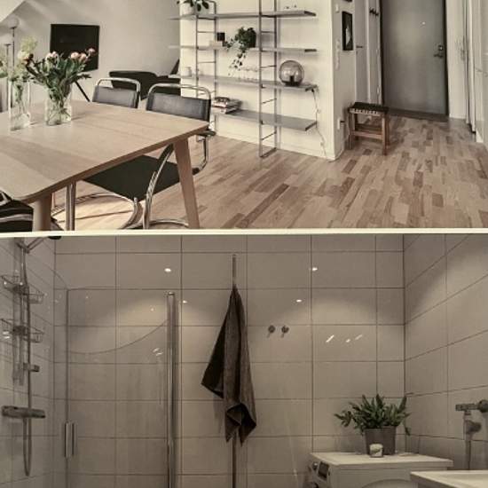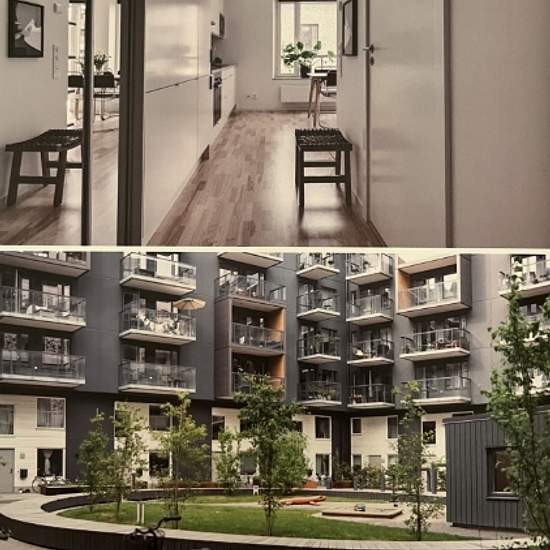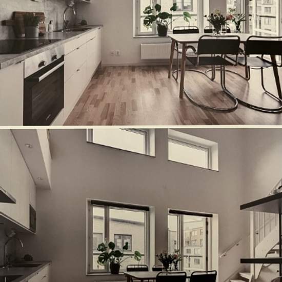Etagelägenhet (2 plan) på våning 6, med över 5 meter i takhöjd. Högst upp i huset med rymlig balkong och eftermiddags- och kvällssol. Stor gemensam takterrass på samma våningsplan, med storbildsskärm och eget pentry. Fastigheten är byggd 2019 och all utrustning är ny. Lägenheten har egen tvättmaskin och torktumlare men det finns även en gemensam tvättstuga. Parkeringsplatser finns på gatan och garageplats kan hyras. Utöver det finns bilpool, mc platser och cykelverkstad på innergården. Stor innergård med grill och lekplats. Området li...