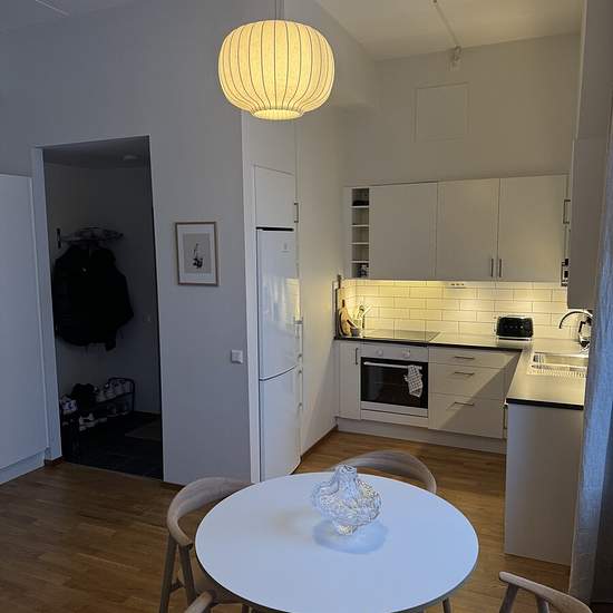 Jag hyr ut min 65 kvm bostad i andrahandsuthyrning i ett år. 3,20 i takhöjd bottenplan med en uteplats. Lägenheten har en öppen planritning och kommer delvis möblerad med andra möbler än de som visas på bilderna. I lägenheten finns även ett litet förråd till förvaring/garderob. Det tillkommer diskmaskin och finns en tvättstuga. I hyran ingår el och vatten. Serviceavgift för hyresgäst: 618