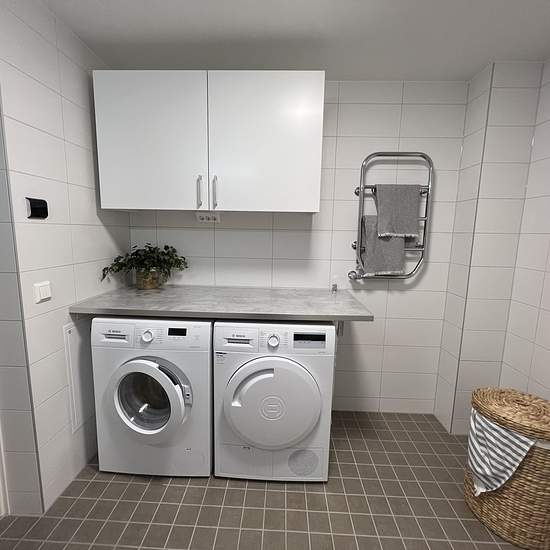 LÄGENHETERNA Väggarna är vitmålade och på golven ligger vacker ekparkett i alla rum samt klinker innanför entrédörren i hallen. Socklar och foder i massiv ek. Förvaringsmöjligheterna i lägenheterna varierar med lägenhetsstorlek. Det finns inga lägenhetsförråd på vind eller källare. Säkerhetsdörr är standard i alla lägenheter och i dörrbladet sitter en nyckeltub för smidig hantering vid serviceanmälan. Köken har skåpsinredning från Marbodal i en sober grå färg och är utrustade med vitvaror i rostfritt från Bosch. Induktionsspis med varmluft...