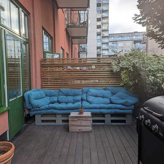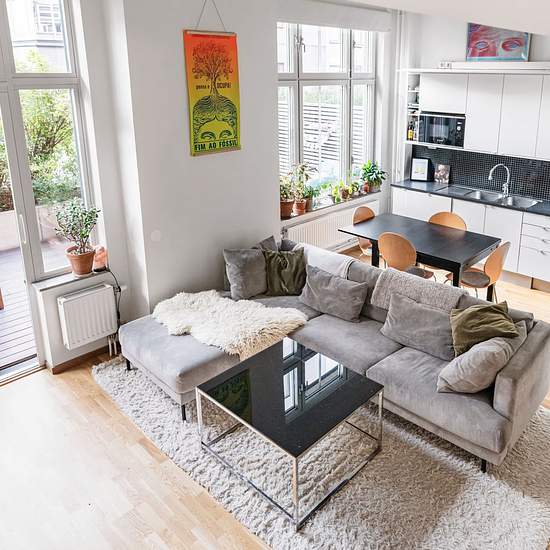 Etagelägenhet, 4,5 m takhöjd i Telefonplan/Midsommarkransen. 65 kvm, 2 rum + kök. Öppen planlösning, separat sovrum på övervåningen, stor uteplats på 18 kvm, grill. Nära till butiker, fik, kultur, E4:an, 3 minuter till bussar tunnelbana. English: Floor apartment in popular Telefonplan/ Midsommarkransen. 4,5 m ceiling height 65 sq.m. 2 rooms and a kitchen. Open plan area with separate bedroom on top floor, big patio bbq 18 sqm. Close to stores, cafés, culture, main E:4 road for swift communication. Busses and subway 3 min away. Serviceavg...