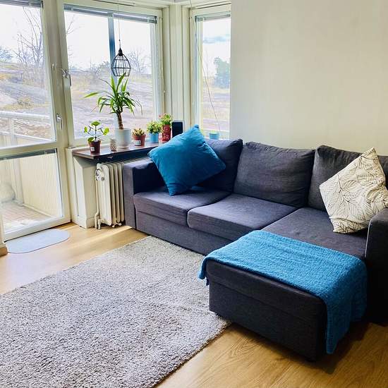 Nice 2 room apartment in the charming Midsommarkransen for rent due to relocation. The apartment is furnished and fully equipped with kitchen and furnitures for a lovely living. Washing and drying combo machine in the toilet and a laundry room in the building. There is no TV in the apartment. It takes about 5 minutes to walk to the Midsommarkransen subway. Heating and water included in the rent. Electricity is charged per usage. Cat is accepted. Serviceavgift för hyresgäst: 821