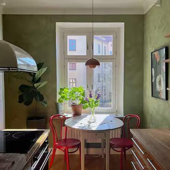 Charming 20th century apartment in the south part of Stockholm with one of the towns most coziest inner yards where you can enjoy a lovely breakfast. With just a few minutes walk you'll reach the subway that will take you to the city center in five minutes. Midsommarkransen gives you the great mix of old charm, trendy restaurants and high end bakeries and boutiques. A peaceful area with several parks and the water just around the corner. Serviceavgift för hyresgäst: 1190