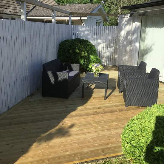 Mycket trevlig och fullt möblerad lägenhet med bästa läge i Tylösand. Egen stor uteplats med utemöbler och grill. Mycket förvaring och garderober i sovrummet. 3 minuters promenad till hotell Tylöhus och stranden i Tylösand, 1 min gångväg till Halmstad golfklubb och busshållplats precis utanför dörren där bussarna går direkt till centrum och Högskolan. Serviceavgift för hyresgäst: 336