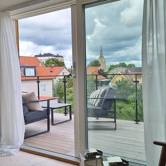 Öppen planlösning med kök och vardagsrum. Ca 5 meter i takhöjd. Spiraltrappa upp till andra våningen som innehåller sovrum, en stor terrass och ett badrum med bastu. Centralt lägen men i ett lugnt område. Du väljer om du vill hyra delvis möblerat eller omöblerat. Samma hyra oavsett. Hyran inkluderar el, värme, vatten, bredband & Verisure Om bostaden Byggnaden byggdes år 2022.