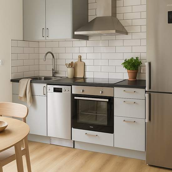 35 smarta kvadratmeter vilket ger dig ett sep sovrum med plats för en dubbelsäng, vardagsrum med kök. Köket är utrustat med diskmaskin Kyl frys i byggnadsingenjör och häll. I toaletten hittar du även din tvättmaskin. Mycket belysning runt huset som är som en egen liten innegård. Det finna parkeringsplatser vid huset, men inte tillräckligt för alla lägenheterna, blir först till kvarn. Ingår värme och varmvatten. El och bredband tecknar man själv, bredband är Halmstad Stadsnät. Vi har låtit få hjälp av AI att inreda köket och sovrummet.