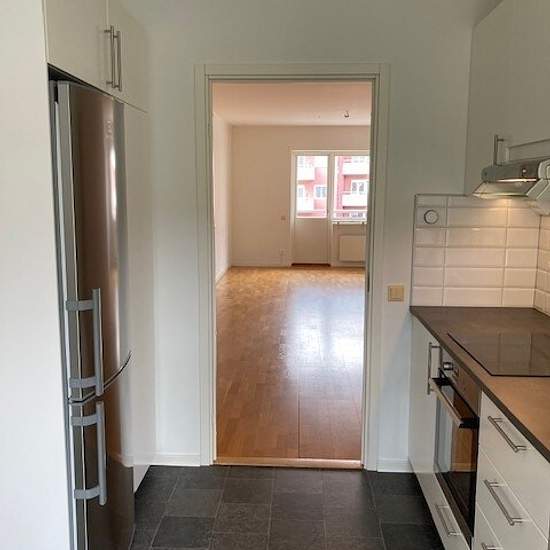 Stor & härlig 2:a med trevlig planlösning som ger lägenheten ett ljust & trivsamt intryck. Lägenheten renoverades 2021 & är i mycket gott skick. Ljust & stilrent kök med utsikt in mot gården. Rostfria vitvaror. Diskmaskin. Skafferi med gott om plats för torrvaror. Plats för mindre matbord. Stort & härligt vardagsrum med balkong & stort fönsterparti ger ett härligt ljusinsläpp. Här finns gott om plats för såväl matbord & soffa. Här finns också plats för en trevlig "mys/läs-hörna" alt skrivbord. Stort sovrum med rymlig klädkammare. Trevli...