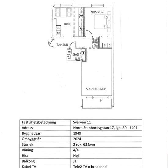 Denna lägenhet är på 63 kvm och ligger på våning 4. Månadshyra 10 302 kronor i hyran ingår vatten, kabel-TV och värme. En fin och välplanerad tvåa renoverad till god standard 2024. Centralt belägen nära till centrum och grönområde.