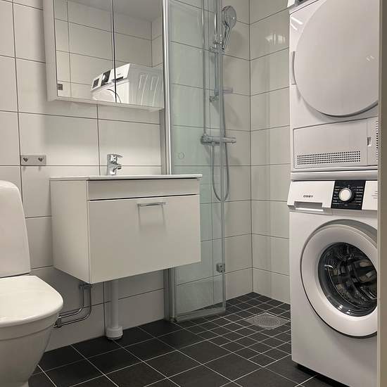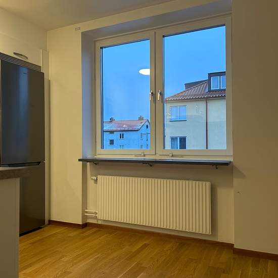 ERBJUDANDE: 1000:- Rabatt under de första 6 månaderna. Ljus och trevlig tvårumslägenhet som totalrenoverades 2022. Planlösningen är genomtänkt och ger en känsla av rymd som gör att bostaden upplevs större än vad kvadratmetrarna anger. Badrummet är fräscht med vitt kakel på väggarna och mörkgrått klinkergolv. Här finns även både tvättmaskin och torktumlare. Köket är modernt med vita skåpsluckor, mörkare bänkskiva och plats för matbord. Utrustningen består av diskmaskin, induktionshäll, varmluftsugn samt inbyggd mikro. Alla väggar målades ...