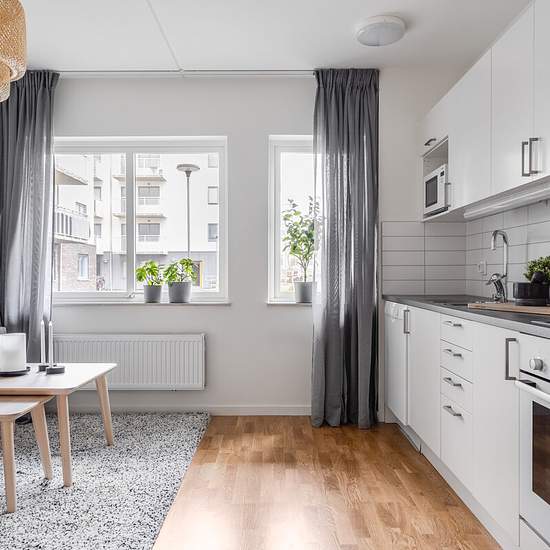 Inflyttningsdatum kan diskuteras. I detta kvarter som byggdes och stod klart för inflyttning 2019 erbjuder vi en variation av lägenhetsstorlekar med fokus på 1-3 rum. Bostäderna är väl genomtänkta med smarta planlösningar. Samtliga rum har ekparkett och ljusa väggar, vilket bidrar till ett fint ljusflöde. Köket har vita släta luckor och en grå bänkskiva med generösa arbetsutrymmenoch bra förvaring. I samtliga lägenheter finns diskmaskin, hällspis samt mikrovågsugn. Badrummen är kaklade med klinkergolv och har spegelskåp, duschvägg i glas, h...
