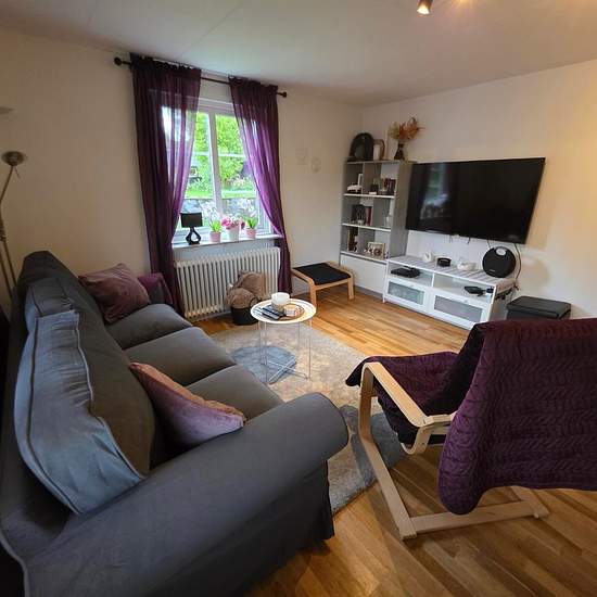 Fin lägenhet i utkanten av Hillared i närheten till naturen. Skola och dagis finns i Hillared. Fiber och basutbudet Telia tv kanaler ingår i hyran. Balkong/altan finns. Gemensam tvättstuga i huset.