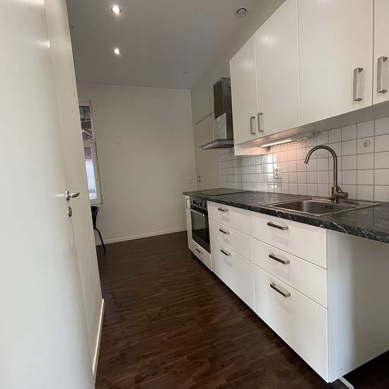Här finns möjligheten till ett förstahandskontrakt på en charmig och annorlunda lägenhet med centralt och lite speciellt läge. Modern tvårumslägenhet (byggd 2015) i bottenplan av äldre nyrenoverad fastighet. Entre genom egen dörr direkt från gatan. På entreplan finns förutom hallen ett vardagsrum med högt till tak och stor fönsteryta mot gatan. Här finns även plats för matbord om man så vill. Tre trappsteg upp finns modernt kök med plats för mindre matplats, helkaklat badrum och ett rymligt sovrum med fönster mot innergård. Gratis park...