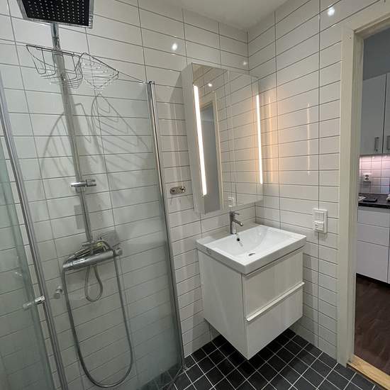 Här finns möjligheten till ett förstahandskontrakt på en charmig och annorlunda lägenhet med centralt läge. Modern tvårumslägenhet (byggd 2015) i bottenplan av äldre nyrenoverad fastighet. Entre genom egen dörr direkt från gatan. På entreplan finns förutom hallen ett vardagsrum med högt till tak och stor fönsteryta mot gatan. Här finns även plats för matbord om man så vill. Tre trappsteg upp finns modernt kök med plats för mindre matplats, helkaklat badrum och ett rymligt sovrum med fönster mot innergård. Gratis parkering utanför dörre...