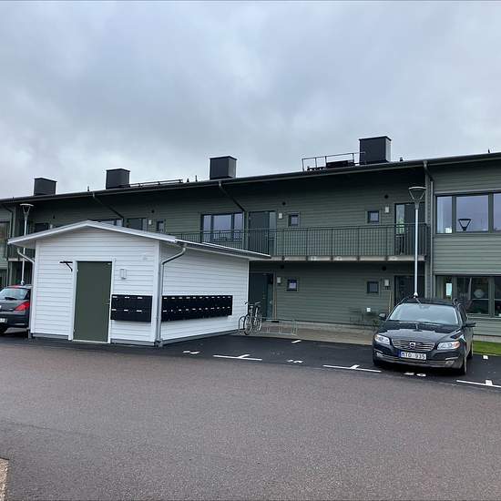 Nybyggd 2 rok om 55 kvm belägen på gaveln. Stort kök i vinkel med trevligt litet gavelfönster, diskmaskin och trevlig matplats ut mot loftgången. Badrum med dusch och tvätt avdelning med tvättmaskin, torktumlare. Stort sovrum med gott om garderober. Från vardagsrummet kommer man ut till en stor härlig balkong med söderläge. Finns även en liten uteplats vid loftgången. Förråd i separat byggnad. Det ingår en parkeringsplats i hyran. Möjlighet att hyra en laddplats.