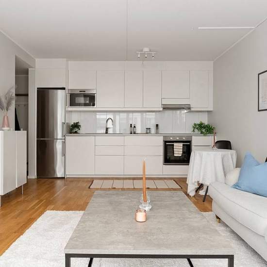 Välkommen till denna lägenhet som idag är en tvåa. Här är det bara att flytta in i ett hem där du inte behöver göra någonting annat än att ställa in dina favoritmöbler. Denna lägenhet med en generös uteplats i soligt söderläge med plats för loungegrupp. Uteplatsen ligger insynsskyddat från vägen, i en grönskande omgivning. Här råder modernitet i både kvalitet och design. Här erbjuds en stilren interiör med genomgående parkettgolv, ljust målade väggar och ett smakfullt inrett badrum med golvvärme. Vardagsrum med akustikpanel på en av vägga...