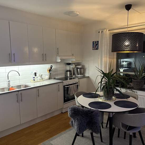 Hej Jag hyr ut min mysiga lagenhet dels möblerad eller utan möbler. Den är precis framför ett naturreservat jag har inga granne framför lägenheten, min balkong är möblerad vilken är väldigt mysigt under sommar samt stora fönster rund kring i som ge bra naturlig ljus som kommer in. Vår områden är väldigt familj vänligt passar perfekt till de som uppskattar lugna stunder tillsammans med naturen och finns grillplatser rund kring och frisbee banan . Vår grannar är väldigt vänliga och trevliga. Jag hyr ut min lägenheten för en period av 3,4,6...