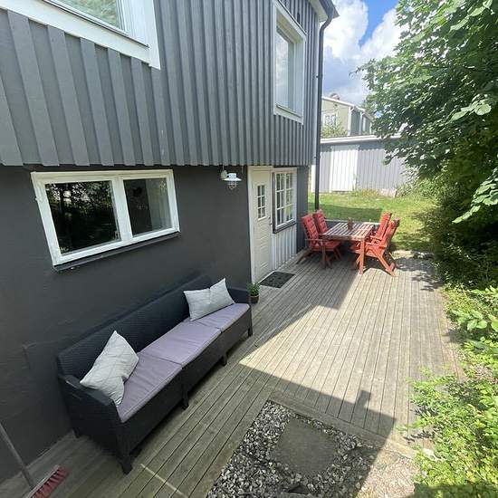 Mysig lägenhet i del av villa med egen ingång och uteplats. Souterrängvåning. Vardagsrum med eldstad och bäddsoffa (140 cm utfälld). Sovrum med dubbelsäng 180 cm och vattenburen golvvärme. Badrum med golvvärme. Egen tvättstuga. Boendet är beläget i ett lugnt och trevligt villaområde med goda kommunikationer och nära till grönområden, sjöar och naturreservat med elljusspår. 12 min promenad till pendeltåg Stuvsta station och 3 min till buss som går mellan Huddinge station och Fruängen. ICA butik, apotek, vårdcentral etc. finns vid Stuvsta st...