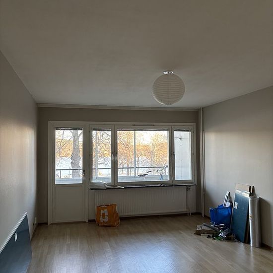 63 kvm med ingång på bottenplan. Rymlig hall med en större walk-in-closet. Helt nyrenoverat kök med plats för köksbord. Stort vardagsrum med utgång till inglasad balkong (belägen 1 trappa upp från markplan). Ljust sovrum med bra garderobsutrymme. Halvkaklat badrum med ny kommod och dusch. Ett källarförråd och garageplats kan ingå mot avgift vid önskemål. Tvättstuga i källaren. Väldigt trevlig och skötsam BRF. Serviceavgift för hyresgäst: 612