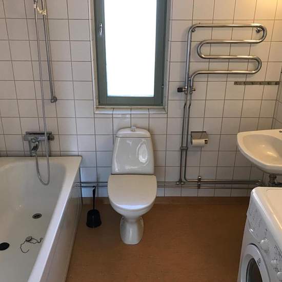 Lägenheten är utrustad med diskmaskin, tvättmaskin, spis med glaskeramikhäll och varmluftsugn, badkar och balkong. Fastigheten har hiss och är ansluten med fiber. TV-paket Mellan från Telia ingår.
