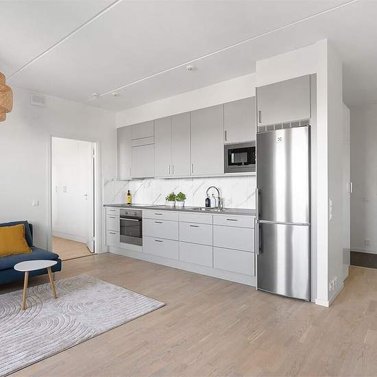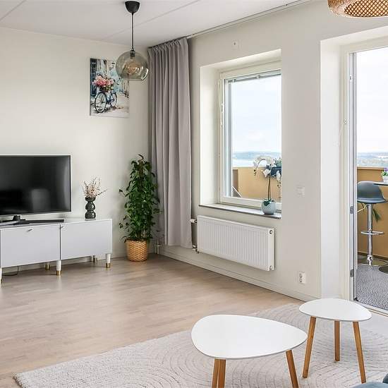 Modern top-floor apartment on the 15th floor with stunning lake views, located in the heart of Kallhäll Centrum. Just a 1-minute walk to the commuter train station and only 19 minutes to Odenplan, this home offers both convenience and tranquility. Enjoy bright interiors, peaceful surroundings, and easy access to city life. Serviceavgift för hyresgäst: 815