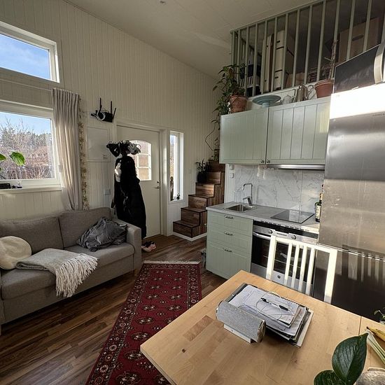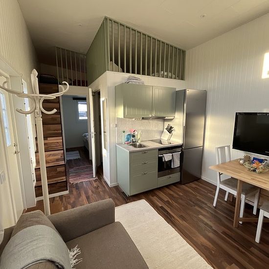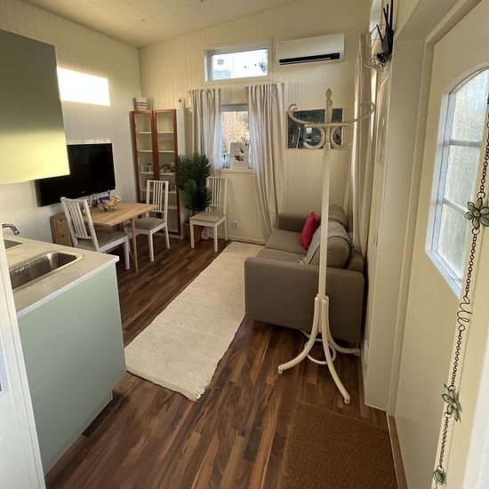 Attefallshus i Skälby med egen trädgård och ingång. Här bor du med promenadavstånd till badplatser restauranger och mataffärer. En biltur på 5 minuter så är du i Barkarby handelsplats. 50m till buss och inte så långt från pendel. Mycket bra parkeringsmöjligheter precis framför ingången. Även för fler bilar. Huset/lägenheten är byggd som en mindre 2,5:a, så du har separat sovrum, toalett med dusch, TM och TT, kök vardagsrum samt stort loft allt på 30m2 + 15m2loft. Stugan är helmöblerad just nu men kan plocka bort möblerna ifall man vill hyr...