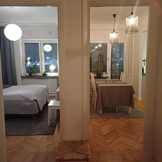 Fin lägenhet hyrs ut möblerad i lugnt område med goda kommunikationer. - Nära tunnelbana, buss, motorväg - Möblerad bostad - Fullt utrustat kök - Diskmaskin - Tvättmaskin - Arbetsplats - Tv basutbud - Bredband - Dubbelsäng - Förvaring/garderober - Balkong med kvällssol × Ej festande × Ej rökning × Ej husdjur Serviceavgift för hyresgäst: 892
