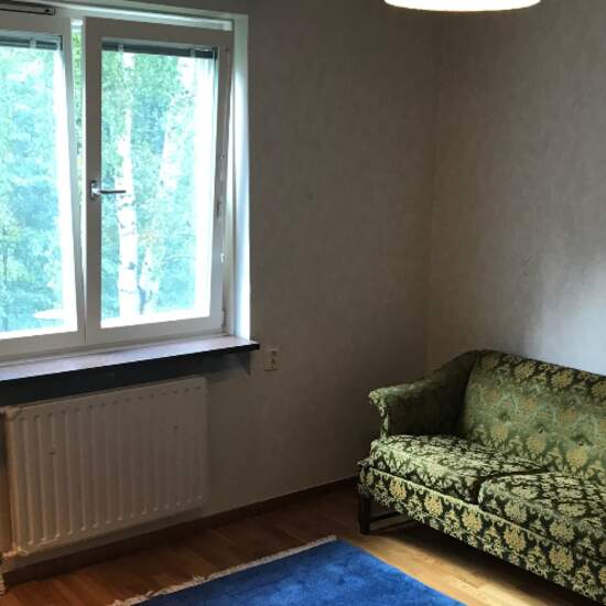 Ett rum i rymlig tvåa i Kärrtorp. Rummet är på ca 18 kvm. Möblerat med möjlighet till viss egen möblering. Två inbyggda garderober. Delat kök, hall och badrum. Husgeråd finns vid behov. Internet ingår i hyran. El tillkommer var tredje månad. Fin ny tvättstuga finns inom 2 minuters gångavstånd. Fem minuter till Kärrtorps Centrum med tunnelbana (grön linje Skarpnäck) och ICA Nära, Coop Nära, café, cykelaffär, veterinär, djuraffär, apotek och flera mindre restauranger. Ca 7-8 min gångväg till Sandsborg med tunnelbana (grön linje Farsta Strand...