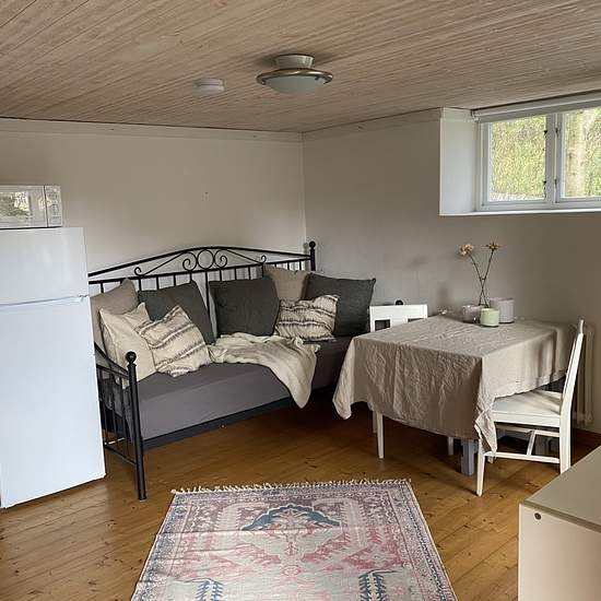Möblerat studentrum uthyres. Du bor i källarplan i våran villa med egen ingång och parkering precis utanför dörren. I rum 1 har du kökspentry, matbord, säng och förvaring. I rum 2 är badrum med duschkabin, toalett, tvättmaskin och förvaring. Serviceavgift för hyresgäst: 227