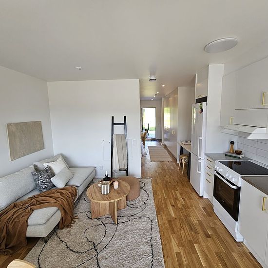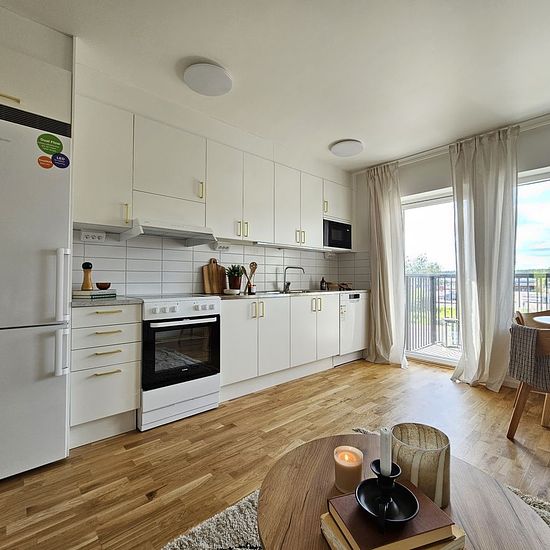 Nu har du chansen att flytta in i en modern och stilren lägenhet OBS! Ordinarie hyra 8 206 kr/mån (Se Villkor). Lägenheten • Ljusa, vitmålade väggar och elegant ekparkett • Öppen planlösning med plats för din personliga stil Köket • Fullt utrustat med diskmaskin, spis med häll, inbyggd mikrovågsugn och kyl/frys • Snygg och praktisk design Badrummet • Helkaklat med duschväggar, spegelskåp och kommod • Fräscht och lättskött Teknik & bekvämligheter • Öppen fiber – välj själv internetleverantör • Telias basutbud av TV-kanaler ingår i hyr...