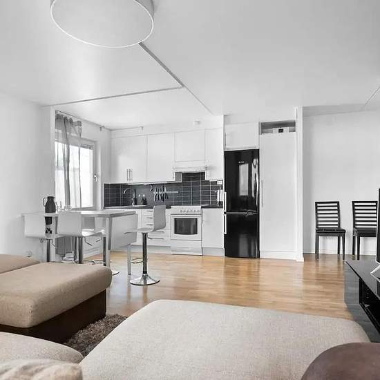 Lägenheten är i mycket bra skick, köket erbjuder en öppen planlösning mot vardagsrummet med goda arbetsytor. Vardagsrummet är luftigt och lätt möblerat. Lägenheten ligger bara 3 minuter från tunnelbanan och 15 min from Stockholm City. I hyran ingår värme, vatten, el, bredband och tv-utbud. I lägenheten finns även en tvättmaskin. Djur är tillåtna Serviceavgift för hyresgäst: 773