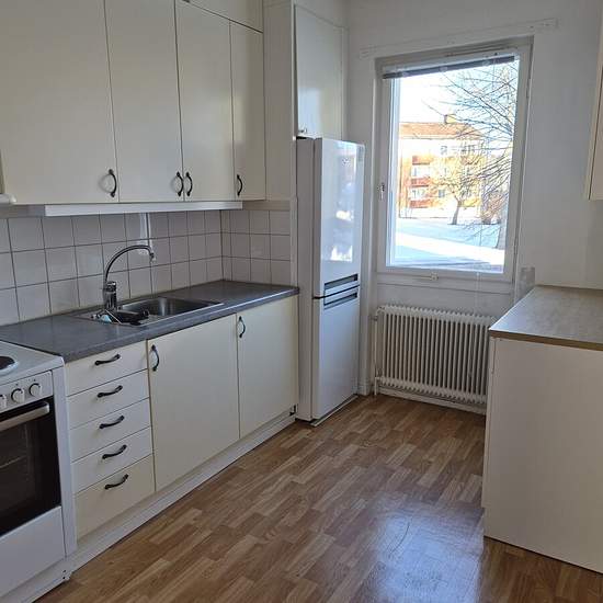 Trevlig 2.5:a med balkong, 60 kvm med lugnt och centralt läge i Köping. Kök med matplats, ljust vardagsrum och trevligt sovrum. Helkaklat badrum. Tvättstuga i fastigheten. Möjlighet att hyra P-Plats med el för motorvärme. Goda referenser och ordnad ekonomi är ett krav. Betalningsanmärkningar accepteras inte. Intresseanmälan via vår hemsida