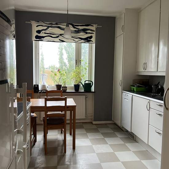 Mysig och genomtänkt genomgående lägenhet med ljusinsläpp från tre håll och gott om förvaringsmöjligheter. Sovrummet jag hyr ut har fönster mot en lugn gata såväl som köket. Vardagsrummet vätter mot en grön innegård. Närmaste busshållsplats ligger tre minuters promenad från lägenheten och flera olika mataffärer hittar du inom tio minuters gångavstånd. Lägenheten är en 3a; innehåller två sovrum, vardagsrum och kök samt badrum. Du har tillgång ditt sovrum samt kök, vardagsrum och badrum samt internet och tv. D.v.s alla ytot utom mitt sovrum. ...