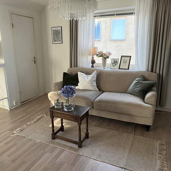En vindsvåning på ca 45 kvm i Limhamn. 300 meter från ICA, Willys, Systembolaget, restauranger, busshållsplats och Apotek. 1 stort rum som fungerar som vardagsrum och matrum samt 1 mindre sovrum (utan dörr). Fint renoverat mindre kök med spis och kyl. All köksutrustning och porslin finns att tillgå Äldre badrum med toalett och badkar (dusch). Lägenheten är på 3e våningen i lugn villagata. Lägenheten är 2 trappor upp där skor ej får användas inne i trapphuset. Delad innergård med 2 andra hyresgäster. Vi bor själva i lägenheten und...