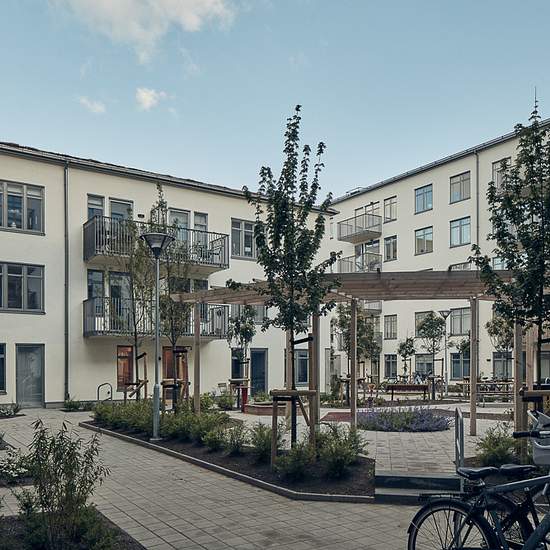 Bostad Huset är i 5 våningar med öppen gård. Byggnaden har en grå färgskala med indragna delar av fibercementskivor. I kvarterens mitt skapas en öppen trädgård med skyddande gröna ytor och gemensamma ytor anpassade för lek. Här finns det gott om plats för dig och dina grannar att umgås och duka upp till fest. Målet är att skapa trygga väderskyddade och tillgängliga utemiljöer som är inbjudande året om. Rökfritt boende Rökförbudet gäller den enskilda lägenheten, på balkong/uteplats, i gemensamma utrymmen samt innergård. Rökning får heller...