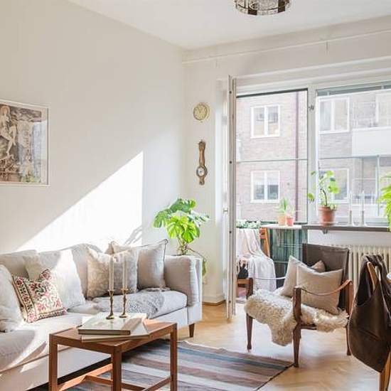 Charmig tvåa på Eslövsgatan uthyres På lugna och mysiga Eslövsgatan, på andra våningen, finns denna fina tvåa med genomgående planlösning och bevarad 30-talscharm. Lägenheten har ett halvt öppet kök med stilrena vita luckor, bänkskiva i gjuten betong och en karaktäristisk ljusblå SMEG-kyl/frys. Vardagsrummet är rymligt och har utgång till en solig balkong. Sovrummet vetter mot den grönskande innergården och badrummet är nyligen renoverat (2025) med helkaklade ytor i ljusa toner. Fiskbensparkett, stora fönster och takhöjd ger lägenheten en ...