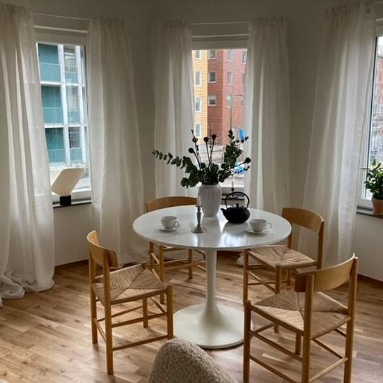 Bostad Solkvarteret är ett kvarter med höga miljöambitioner och mobilitetslösning för dig som hyresgäst. De 85 hyresrätterna är fördelade på två hus som med sina vinklar skapar en naturlig innegård tillsammans med den gamla banvallen mot Hyllie allé som går längs med fastighetsgränsen. Här omges du av grönska och utrymme för att umgås med familj, vänner och dina grannar. Spendera tid vid pergolan, någon av möbelgrupperna eller varför inte på gräsmattan? Lägenheterna är mellan 26-76 kvm fördelade på 1-3 rum och kök. Alla bostäder har vita ...