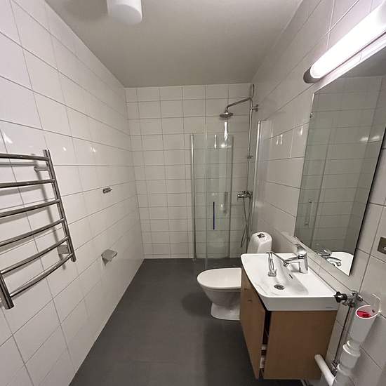 Bostad Om bostaden Trivsam tvårumslägenhet fördelat på 49,4 kvm och belägen på våning 3. Lägenheten har trevlig öppen planlösning mellan kök och vardagsrum, här har ni även utgång till balkongen. Kök med vit köksinteriör, mörk bänkskiva och klinker på golvet vid köksdelen. Köket är utrustat med spis med induktionshäll och varmluftsugn, diskmaskin och halv kyl och frys. Vitvarorna är i rostfritt. Rymligt badrum med vitt kakel på väggar, grå klinker på golvet, dusch med glasdörrar, handukstork och golvvärme för extra komfort. Sovru...
