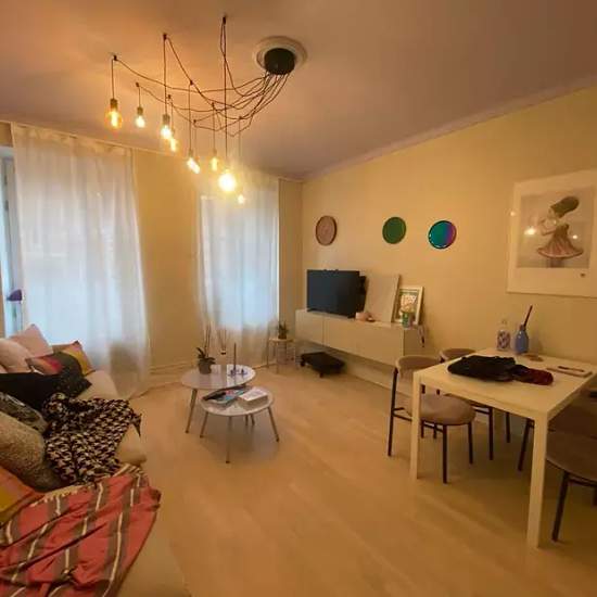 Beskrivning Apartment in Central Malmö – Triangeln, 3 Minutes from the Train Station Modern living in a beautifully renovated former warehouse located in the heart of Malmö, just a short 3-minute walk from Triangeln Station. The apartment features: Newly renovated separate kitchen equipped with a dishwasher. Bedroom for two with a spacious wardrobes. Bright living room with a large sofa and a dining table seating six. Included in the rent: broadband internet and security alarm. Electricity: not included.