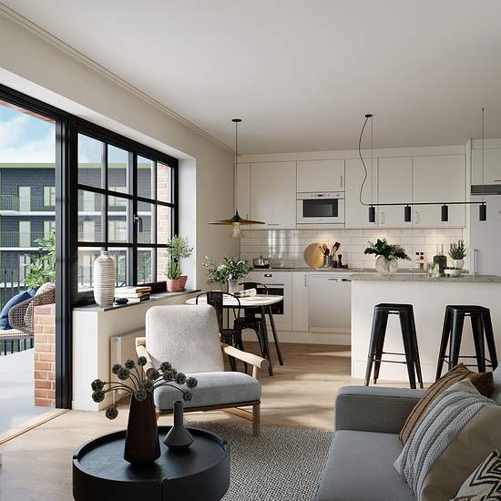 Välkommen till denna ljusa och välplanerade 2:a, belägen på våning 7 i kvarteret Solmagasinet. Här bor du i ett modernt hem med genomtänkt planlösning, tidlösa materialval och hög standard. Bostaden har ett rymligt vardagsrum och kök i öppen planlösning. Här finns gott om plats för både soffgrupp, matbord och sociala ytor. Köket är stilrent och utrustat med induktionshäll, ugn, inbyggd mikrovågsugn, diskmaskin samt kyl/frys. Vitt matt kakel ovan arbetsytorna skapar en modern känsla, och de ljusa väggarna tillsammans med ekparketten ger ett ...