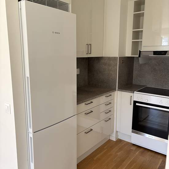 Lägenheterna är planerade för att ha bästa möjliga inomhusmiljö, med hög standard. Golvet är ekparkett i kök, vardagsrum och sovrum. I hall och badrum är det klinkergolv. Badrummen är helkaklade och utrustade med vägghängda toaletter, tvättmaskin och torktumlare alternativt kombimaskiner. Treorna och fyrorna har badkar, medan ettorna och tvåorna har glasade duschväggar. Köken är utrustade med skåpsluckor i vit högglans, bänkskivor klädda med laminat av typ svart sten, och diskbänk helt i rostfritt. I köket hittar du också utrustning för käll...