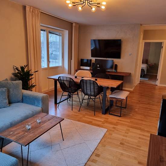 Välkommen till en stilfullt renoverad och välplanerad tvåa i hjärtat av Östra Sorgenfri. Lägenheten har ett modernt och fullt utrustat kök, ett högklassigt media-system, en bekväm 180 cm säng, walk-in closet, arbetsplats samt en rymlig bäddsoffa och ett stort matbord för middagar och umgänge. Här bor du med närhet till stadens puls och bekvämt cykelavstånd till det mesta, och smidiga kollektiva förbindelser till Värnhem, Södervärn och Centralen gör det enkelt att ta sig runt. Jag hyr ut lägenheten då jag ska på delegation i USA i två år, o...