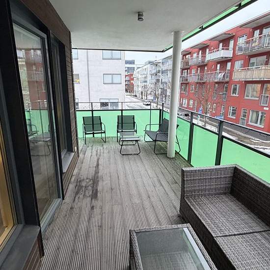 Nyproducerad tvåa i Västra hamnen med exklusiva material och ypperlig planlösning - guldkant i egen stor (25 m2) balkong och gemensam större takterrass. Placerad i Västra hamnen, Malmös nybyggda badkvarter, har lägenheten nära både till bad (10 minuter) och city och centralstationen (15 minuter). ICA maxi, apotek och systembolag ligger bara några minuters promenad bort, likaså flertalet restauranger. Här är lugnt och skönt utan att vara långt in till Malmös mer livade kvarter. I köket med stengolv och stenskivor finns ugn, Micro, Diskmaski...