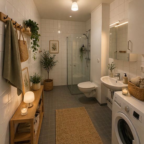 Lägenheten har en ljus och öppen planlösning med ljusgrå väggar, vita tak och genomgående parkettgolv. Köket har vit skåpinredning med full takhöjd, kakel som stänkskydd och bänkskiva i laminat. Till det är köken utrustade med spis, ugn, kyl/frys och diskmaskin. I de helkaklade badrummen finns en kombinerad tvättmaskin och torktumlare installerad som hjälper till med vardagens sysslor. Alla lägenheter har säkerhetsdörr. Tillhörande förråd finns i lägenheten. Utanför fastigheten finns parkeringsplatser, vissa med laddningsmöjlighet för elbi...