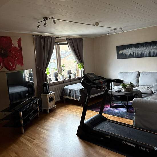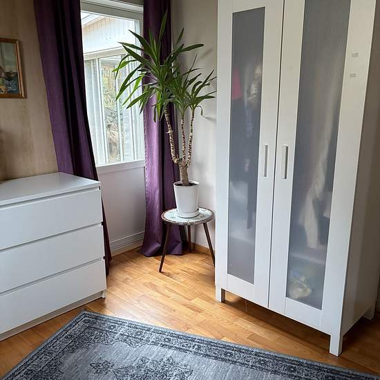 Söker nu nya hyresgäster till ena lägenheten i en villa med två lägenheter. Här har ni möjlighet att bo i stan, i ett lugnt område med fina promenadstråk. Lägenheter har tillgång till trädgård, egen bastu, uterum och förvaring i källare. Rum: 1 kök, 1 badrum, 1 vardagsrum, 1 sovrum, 1 tvättrum, 1 bastu, 1 stort källarrum, 1 uterum, 1 altan, 1 veranda. Ytor: 73 m2 boarea, 89 m2 biarea. Tomten är 854 m2, men den delas med den andra lägenheten. Hyran som anges är kallhyra utan EL, VA och hushållsel. Det kommer erbjudas att detta ingår för et...