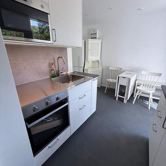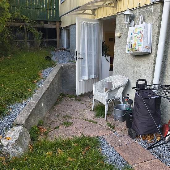 Nyrenoverad lägenhet med trädgård 15 min från Stockholms city I ett lugnt och tryggt villaområde i Stockholm 15 minuter från Slussen finns en härlig och nyrenoverad källarlägenhet med egen privat trädgård i söderläge med gräsmatta, odlingsmöjligheter, m.m. 100 meter till badbrygga. Planlösning Trappa för nå lägenheten Trädgård med uteplats insynsskyddad och privat Kök m matplats för fyra Allrum med bäddsoffa och skåp Sovrum med enkelsäng och dusch och tvättpelare Separat toalett med ingång från kök Kommunikationer 5 minuter gångavstånd t...