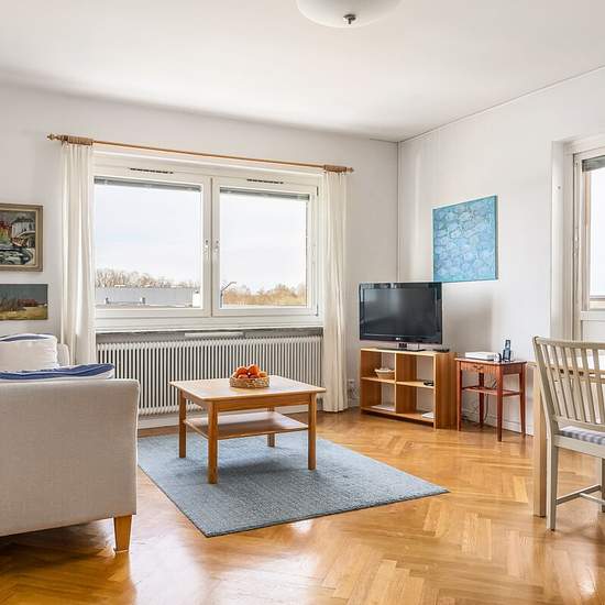 Möjligt att hyra depositionsfritt genom Samtrygg. Månadskostnad: 7705 kr. ________________________________________________________________ Snabbast bokar du visning genom att följa denna länk till Samtrygg: Här hittar du även fler bilder och mer info. ________________________________________________________________ Hörnlägenhet högst upp på 4e våningen med fri utsikt i i tre väderstreck belägen på Smedstugugatan 15b. Från vardagsrummet kommer man ut på balkongen i västerläge. Huset saknar hiss, men trapporna ger dig en daglig dos gr...