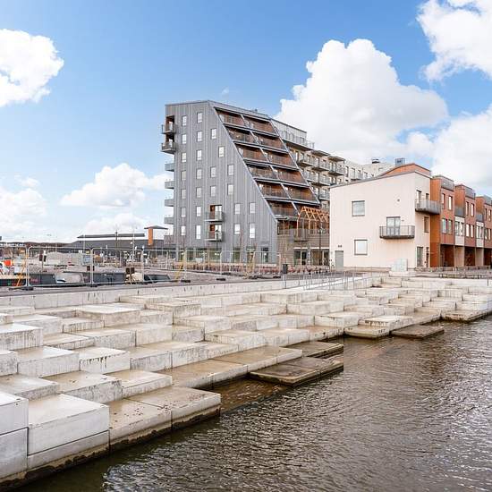 HSB brf Inre hamnen byggs med en stor variation av olika bostäder. Här finns tegelhuset med sin tydliga volym mot Saltängsgatan och generösa balkonger mot gården, hörnhuset med sin häftiga snedskurna form och djupa soliga terrasser, stadsradhusen med sina härliga takterrasser och uteplatser samt studiolägenheterna med sin rymd och ungdomliga attityd. Den stora bredden är ett medvetet val för att du oavsett ålder och oavsett konstellation ska kunna hitta det goda livet vid vattnet i stan. Rymlig och ljus lgh. Uteplats trots att lgh är ...
