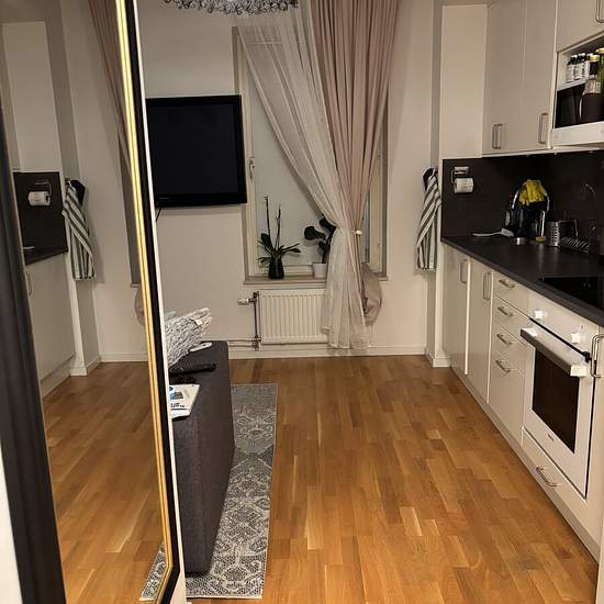 Hej Här är en liten 2:a med fullt utrustad kök och fräsch toalett. Matrum och vardagsrum/sovrum. Nyproduktion med rymlig balkong som har fin utsikt. Cirka 2 minuter från tunnelbanan och 5 min till närmaste köpcentrum. I hyran ingår bara wifi. Jag hyr ut den för att jag ska flytta ihop med min partner. Visar gärna lägenheten vid intresse. Serviceavgift för hyresgäst: 714